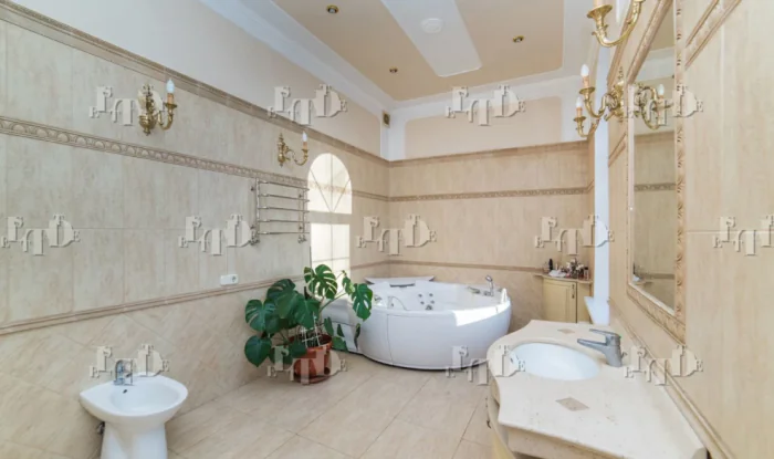 В особняке есть гостиная с авторским камином, столовая зона, кухня, несколько спальных комнат, на каждом этаже есть ванная комната и с/у, мраморная лестница и бронированная входная дверь.