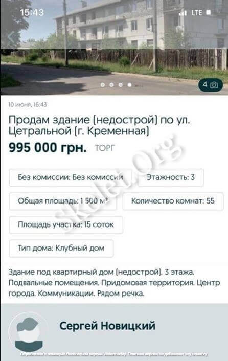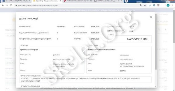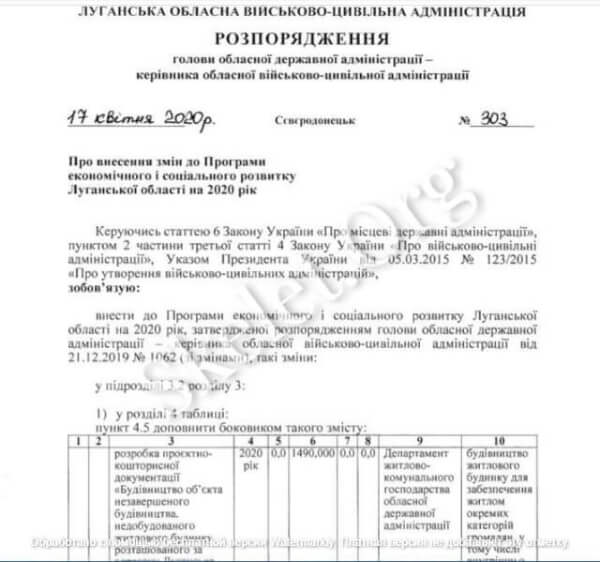 Областная власть нашла старый недострой, который продавался владельцем, по информации Skelet.Org за 995 тысяч гривен. Затем 17 апреля 2020 года купила его за… 6 485 519 гривен, переплатив почти в семь раз! Интересно, какая сумма отката досталась Гайдаю и его приближенным, а сколько Резникову? Ведь деньги брали из сумы, выделенной Германией, и они шли через Резникова как вице-премьера и министра интеграции оккупированных территорий! Плюс областная администрация выделила на достройку этого дома еще 1 490 000 гривен.