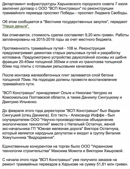 Зато в Одессе Алексей Морщагин сразу развернул деятельность, договорившись с горсоветом о поставке рельс. Договорился он так хорошо, что обсуждает их закупку еще до объявления тендера. Владельцев горсовета Морщагин называет своими партнерами. Наличие в семейном имуществе Апелляционного Хозяйственного суда такому партнерству очень помогает.