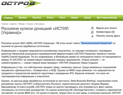 “Донецкспецсталь” Морщагина гордо торгует продукцией концерна Евраз Романа Абрамовича.