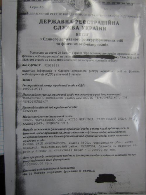 В течение нескольких лет выстроенная схема удовлетворяла всех, однако в 2005, после того как Арсений Яценюк получил пост министра экономики Украины, произошло следующее. Городские власти Черновцов, при активной поддержке городского головы Федорука, выделили в аренду ООО «Инвест-Альянс» (учредитель – Лидия Степановна Лещева, родная тетя Арсения Яценюка) земельный участок площадью 6,42 га по улице Калиновской 13Б. Этот «пустырь» принадлежал местной автошколе ДОССАФ и находился аккурат на границе расширяющегося рынка «Калиновский». Собственно, более рынку расширяться было некуда, только в одну сторону – и этот участок заполучило ООО «Инвест-Альянс» якобы под строительство учебно-выставочного павильона. Но вместо выставки на арендуемом участке создается частный рынок «Добробут», учредителями и владельцами которого стали «Инвест-Альянс» и предприятие «Букотрейдинг». И как оказалось, учредителем самого «Букотрейдинга» (с уставным фондом 17 миллионов гривен) является скромный черновицкий пенсионер, любящий почитать на диване книги, Юрий Николаевич Бурбак. Происхождение этих 17 миллионов, внесенных в уставной фонд «Букотрейдинга», он так и не пояснил.