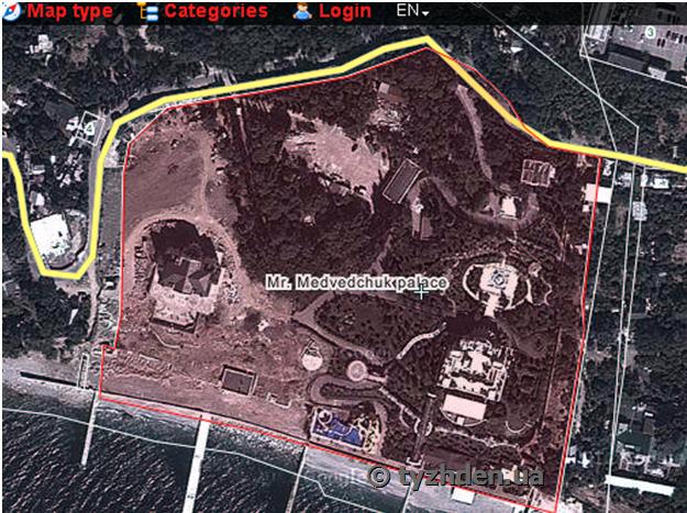 Интересно, что объект легко найти на спутниковых картах Google, а на некоторых этот особняк и земельный участок площадью 6,7 гектара обозначается как «дворец Медведчука». При этом, здание фактически не имеет адреса или же он скрыт. На тех же картах видно, что половину обозначенной территории занимает «дворец», а другую – Детский санаторий имени Боброва, который существует в Крыму не менее века. В территорию «дворца» входит в том числе пляж, который был отобран у санатория.