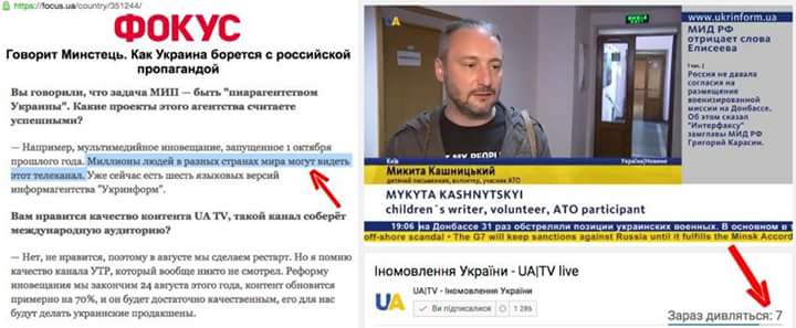 Но… его не смотрят даже в России: перерыв тамошние СМИ, пытливый завсегдатай Интернет не найдет ни одного упоминания об этом чуде — тамошним политиканам он совершенно неинтересен, поскольку безвреден. В отличие, например, от прогремевшего волонтерского канала Миротворец. Неинтересен он и отечественному потребителю медиаконтента: кому охота смотреть унылые передачи в низком качестве, с обилием рекламы и при полном отсутствии остросюжетных ток-шоу в прямом эфире? Словом, полный провал и полномасштабное фиаско, и самое время задаться вопросом — на что были потрачены такие огромные деньги?