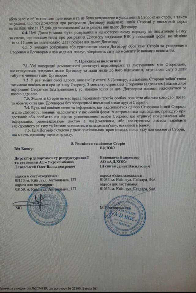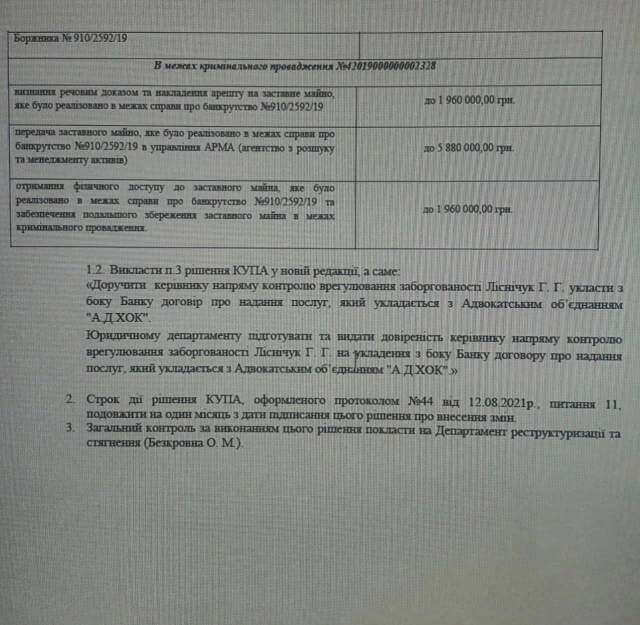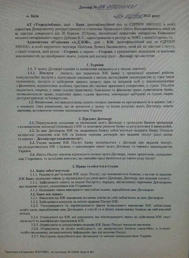Об этом нашей редакции стало известно из Договора о предоставлении услуг между адвокатским объединением A.D.HOC и АО «Укрэксимбанк».