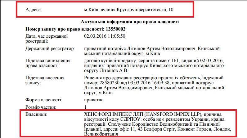 Блоггер отметил, что фирма Марины Пелых Хенсфорд-Украина присвоила более 1000 кв. м. элитной недвижимости в центре столицы. Теперь эта компания сможет оформить и землю в центре Киева в свою собственность.